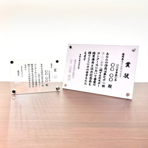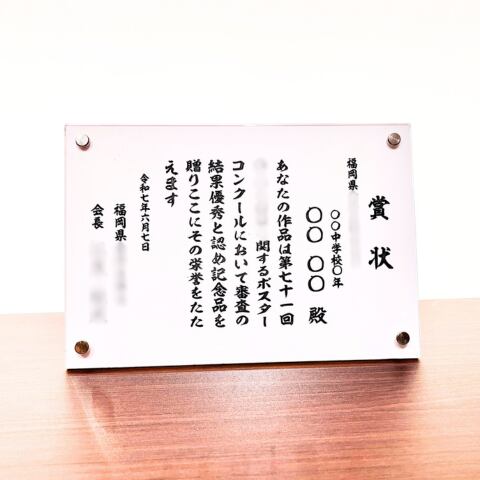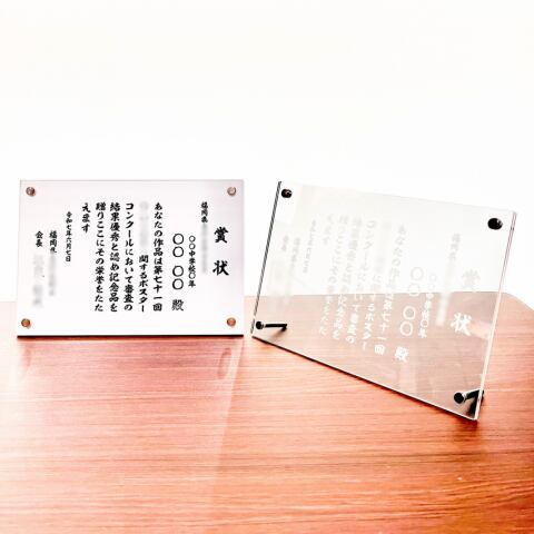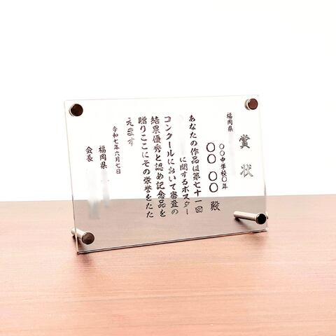 上質なアクリル素材を使用した、長く飾れる表彰状です。