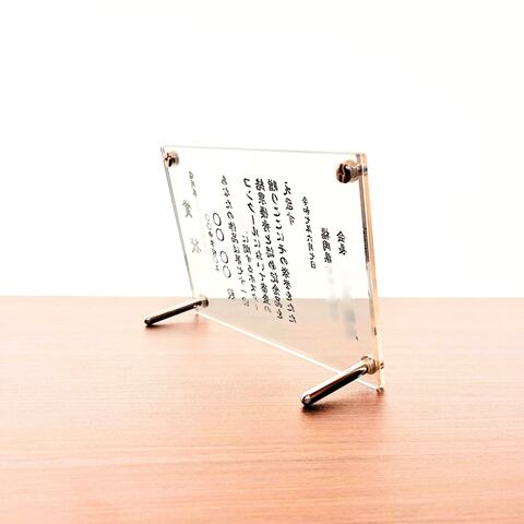 紙の賞状にはない高級感と存在感があり、受賞の価値や感謝の想いを、かたちとして美しく残る、自立型アクリルスタンドとなっております。